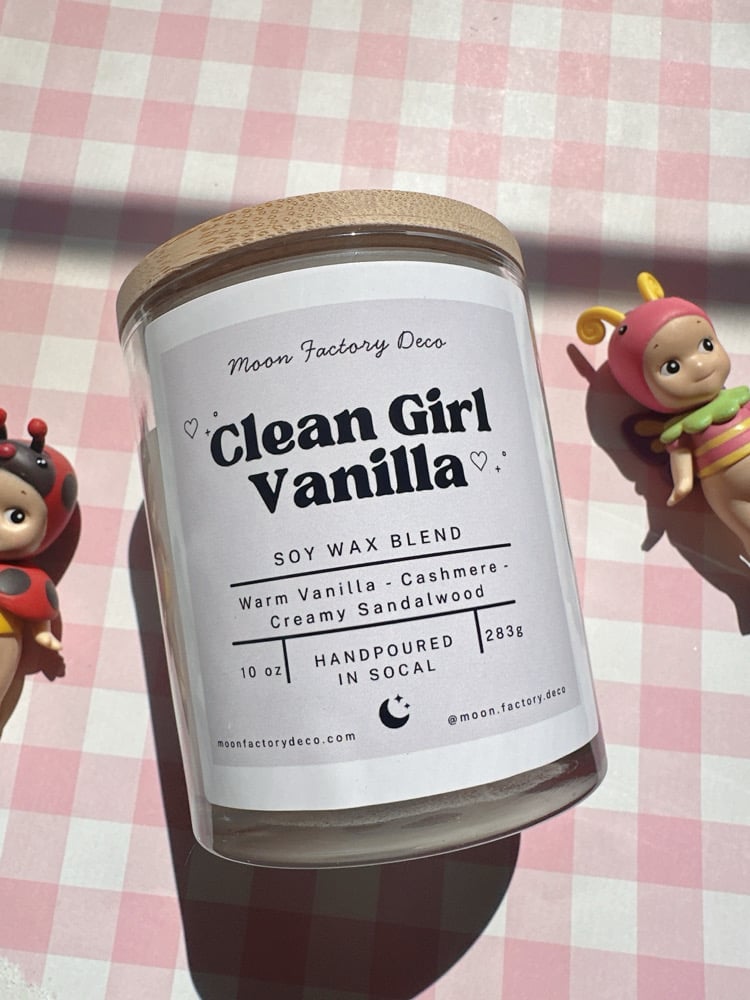 Clean Girl Vanilla scented candle ♡₊˚ 🦢・₊✧ This upscale vanilla cashmere and creamy sandalwood scent creates a comforting and irresistible blend you won’t want to put out!