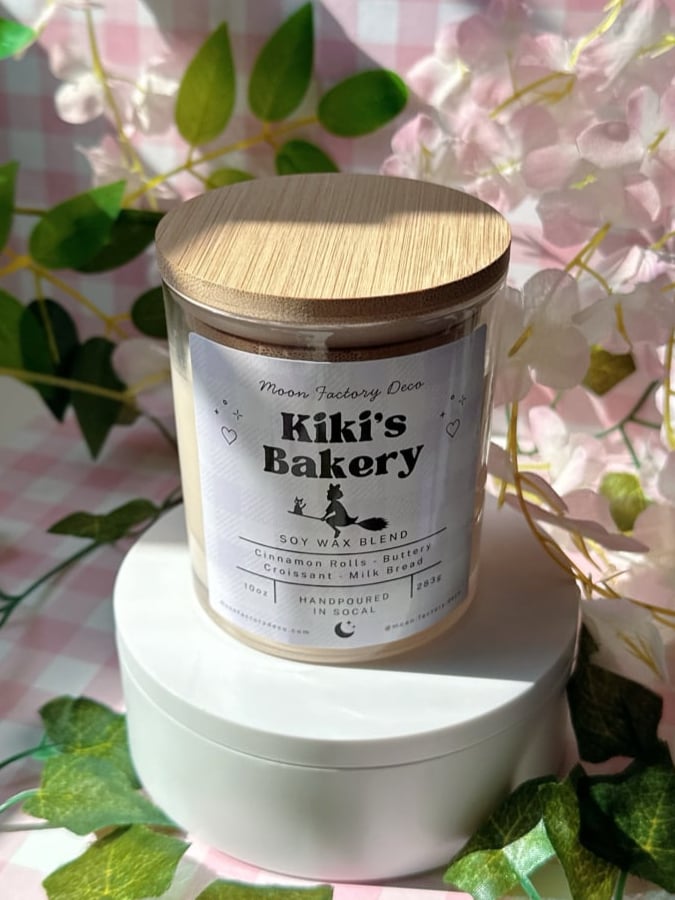 Kiki’s Bakery scented candle 🥐Inspired by a certain anime, this mouthwateringly delicious scented candle will have you sat in a quaint little bakeshop while the smell of cinnamon rolls, milk bread, and buttery croissants float around you!