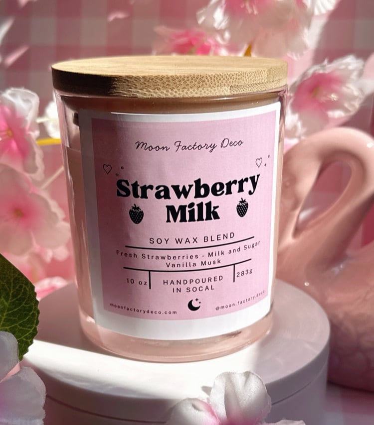 Strawberry Milk scented candle 🍓The perfect blend of sweet strawberry, milk and sugar cream that you won’t want to put out!