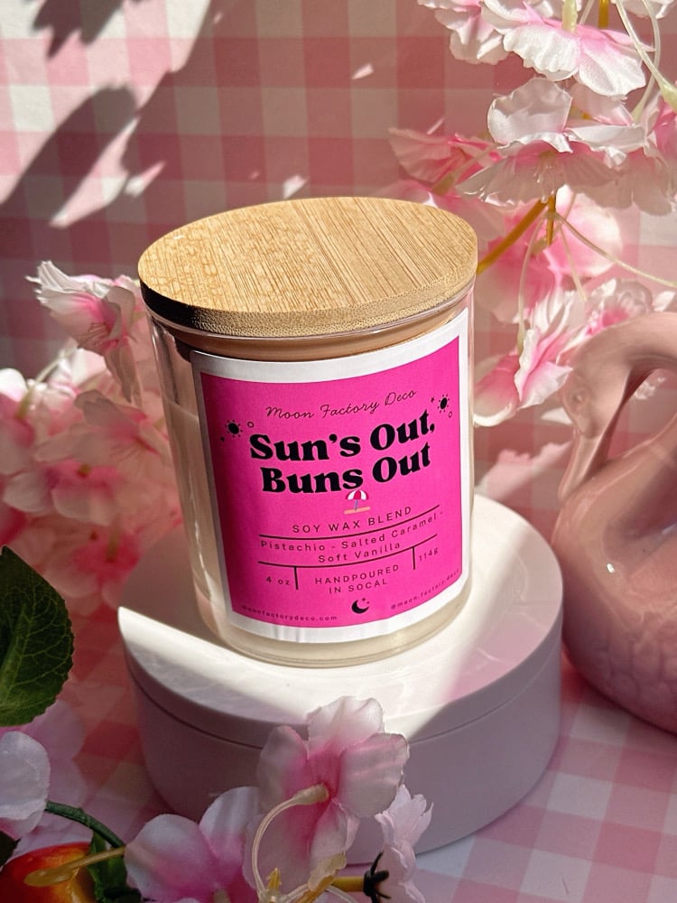 Sun’s Out, Buns Out scented candle *.✧🌺 🥥✧*. Our interpretation of the cheirosa 62 scent: Pistachio, salted caramel and vanilla create an irresistible blend you won’t want to put out!